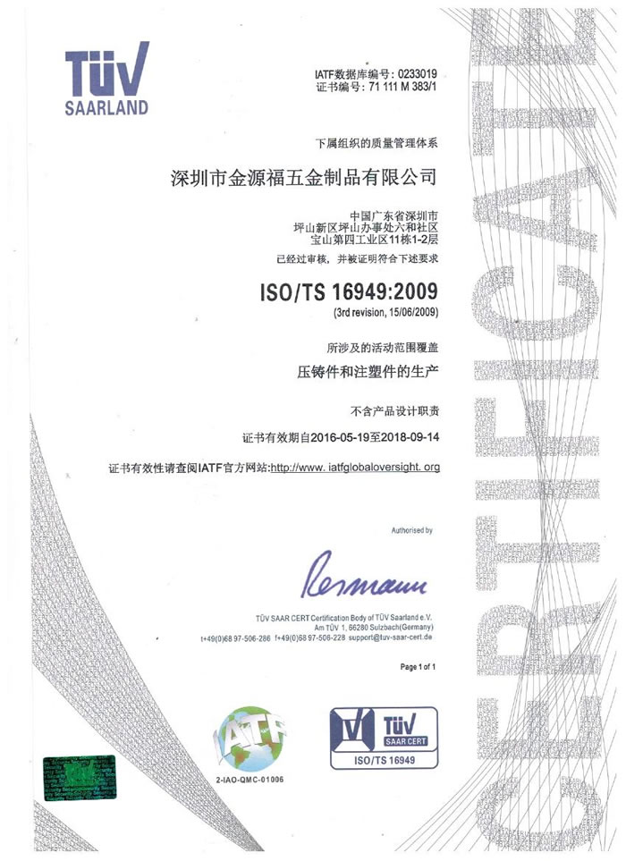 專(zhuān)注于鋁合金壓鑄件,獲得ISO9001:2008/ISO1440/TS16949:2009等專(zhuān)業(yè)資質(zhì)